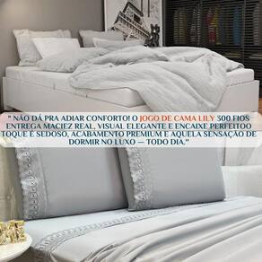 Não deixe para depois: sua cama merece a experiência única que só o Jogo de Cama Lily 300 fios Queen Size pode proporcionar. Além de elegante, é durável, fácil de cuidar e feito para deixar sua cama impecável.