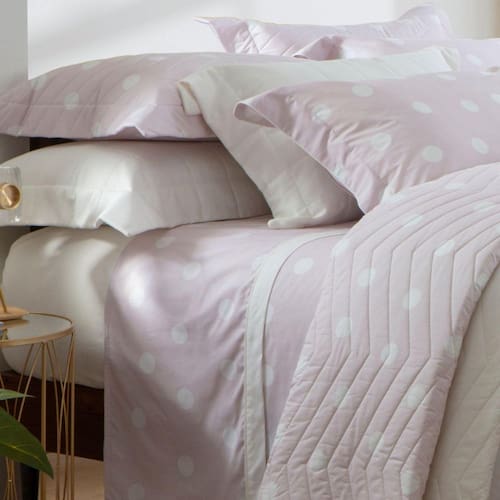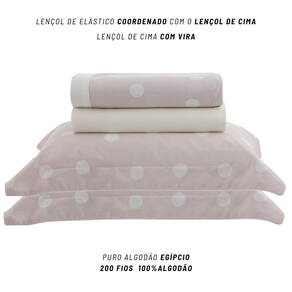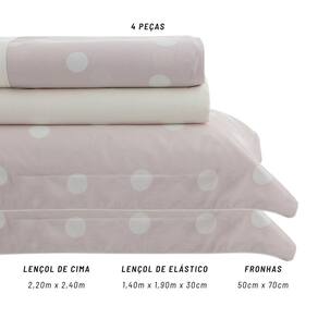 Contém: 04 Peças 01 Lençol de cima com vira Casal 2,20x2,50m 01 Lençol de baixo Casal com Elástico 1,40x1,90m com 30cm de altura 02 Fronhas 0,50x0,70m Estampa: Poa Ives