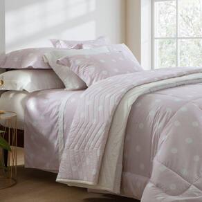Contém: 04 Peças 01 Lençol de cima com vira Casal 2,20x2,50m 01 Lençol de baixo Casal com Elástico 1,40x1,90m com 30cm de altura 02 Fronhas 0,50x0,70m Estampa: Poa Ives
