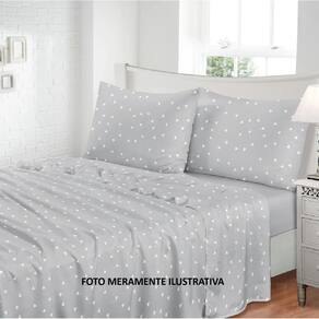 Medida: lençol com elástico 1,38 m x 1,88 m x 30cm p/ colchão com altura até 27 cm ; 1 lençol superior 2,10 m x 2,30 m; 2 fronhas 50cm x 70cm ;