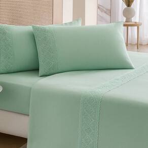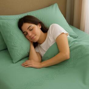 O diferencial está no delicado bordado inglês aplicado no sobre lençol e nas fronhas, que traz elegância e charme à sua cama. Além disso, o lençol com elástico garante praticidade e ajuste perfeito ao colchão.