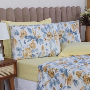 Jogo de Cama Casal 4p Lençol + Fronha Esmeralda Percal 100% Algodão Cor: Conchas amarelo Mais beleza para o seu dia a dia e conforto para as suas noites de sono.