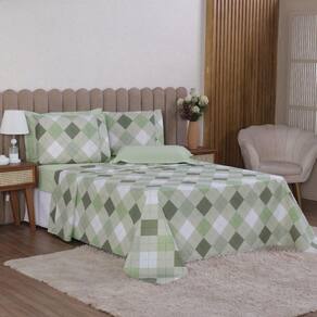 Jogo de Cama Casal 4p Lençol + Fronha Esmeralda Percal 100% Algodão Cor: Xadrez verde Mais beleza para o seu dia a dia e conforto para as suas noites de sono.
