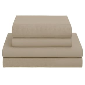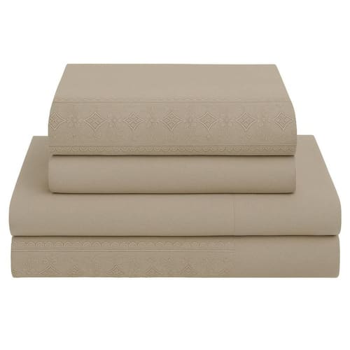 Jogo Cama Casal 4Peças Bordado Inglês Exclusive Vivaldi Bege