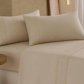 Jogo Cama Casal 4Peças Bordado Inglês Exclusive Vivaldi Bege