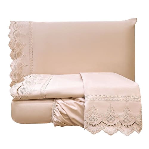 Jogo Cama Casal Angely Bordado Inglês 4 pçs Rosé - Rosê
