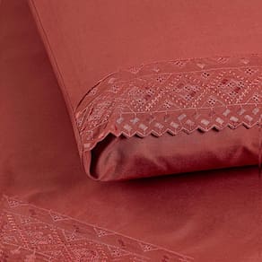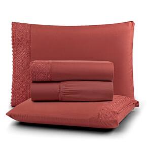 Jogo Cama Casal Cherry Bordado Inglês 4pç 100% Poliéster - Canel - Terracota
