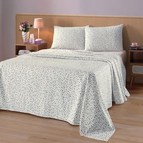 Conteúdo da embalagem:1 sobrelençol (200 x 250 cm); 1 lençol com elástico (138 x 188 x 35 cm); 2 fronhas (50 x 70 cm) N° Fios: 150 Fios