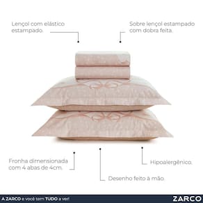 PRINCIPAIS CARACTERÍSTICAS: . Jogo 4 peças; . Sobre lençol estampado com dobra feita; . Lençol com elástico estampado; . Fronha dimensionada com 4 abas de 4cm; . Desenho feito à mão; . Antipilling; . Hipoalergênico; . Percal 100% Algodão 200 Fios.