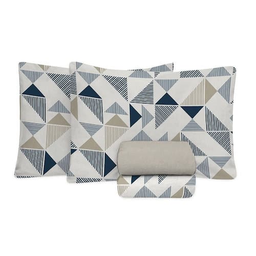 Jogo Cama King 4 Peças Algodão 150 Fios Geo Azul Estamparia