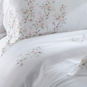 A beleza incomparável da estampa Lovan marca presença com delicadeza e sofisticação. Com flores suaves em tons rosé que seguem um movimento sublime, esse jogo de cama traduz leveza e romantismo. A composição de 100% bambu com 400 fios proporciona um toque surpreendentemente macio, brilho elegante e sensação térmica ideal no verão e aconchego no frio. A Kacyumara mais uma vez entrega um produto que une requinte, conforto e arte em forma de tecido. Para quem valoriza cada detalhe do descanso, Lovan é mais que um jogo de cama, é uma experiência.