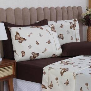 Jogo de Cama King 6p Lençol + Fronha Esmeralda Percal 100% Algodão Cor: Borboleta marrom Mais beleza para o seu dia a dia e conforto para as suas noites de sono.