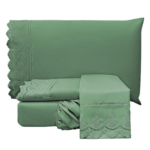 Jogo Cama King Angely Bordado Inglês 4 Pçs Esmerald