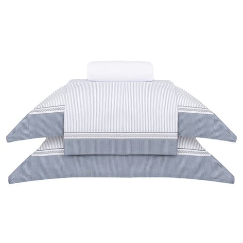 Conteúdo Embalagem: 1 sobrelençol (280 x 240 cm); 1 lençol com elástico (193 x 203 x 40 cm); 2 fronhas (50 x 70 cm) N° Fios: 180 fios