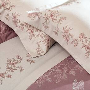 Estampa natural marcante: floral artístico com pássaros e tons terrosos. Detalhes de alta costura: moldura ondulada nas fronhas e vira refinada no sobrelençol. Toque acetinado: maciez e frescor para noites mais relaxantes. Fácil de manter: lavável em máquina, com alta durabilidade. Tecido 100% algodão de fibra longa: conforto respirável e resistente ao uso diário.