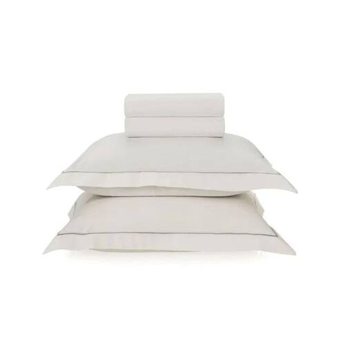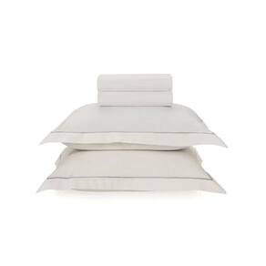 Jogo Cama King Deliz 100% Algodão Branco e Cinza Karsten Jogo de Cama King 200 Fios Percal 100% Algodão Deliz Branco/Cinza