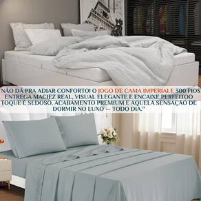 Imagine deitar-se em uma cama com toque sedoso, frescor natural e visual sofisticado. O Jogo de Cama Imperiale não é apenas enxoval, é um convite para noites tranquilas e cheias de bem-estar. Cada bordado traz um detalhe de requinte, transformando seu quarto em um verdadeiro cenário de revista. É o carinho que você merece depois de um longo dia.
