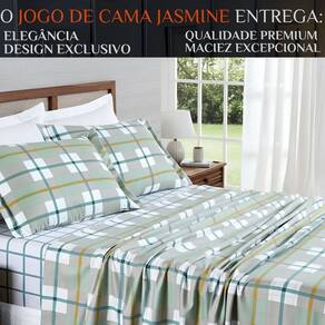 Feche os olhos e imagine: seu quarto iluminado por uma luz suave, a cama impecável, e o toque do Jasmine te abraçando. Isso não é só um jogo de cama - é um convite ao descanso que renova corpo e alma.