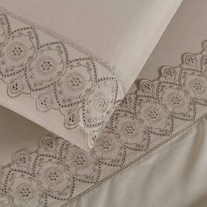 Jogo Cama Lençol Bouclê King Micro Percal 200 Fios c/ Laise Bordada 4 Peças - Bege Taupe - Única