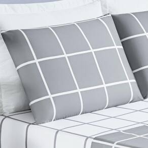 Jogo Cama Lençol Brooklyn Casal Quadriculado Micropercal 200 Fios 4 Peças - Cinza