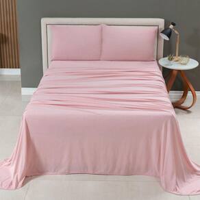 Jogo Cama Lençol Casa Scarpa Sonnet Casal Padrão Malha Lisa Algodão Macio 4 Peças - Rosê