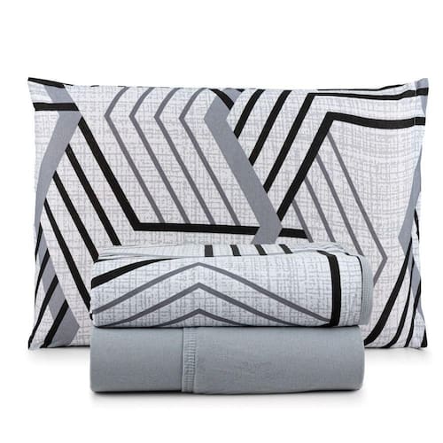 Jogo Cama Lençol Casa Scarpa Sonnet Solteiro Malha Estampada Algodão 3 Peças - Geométrico - Cinza
