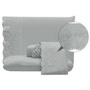 Jogo de Cama Lençol Casal Desirre 4 Peças - Cinza - 100% Poliéster