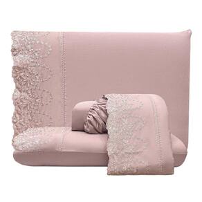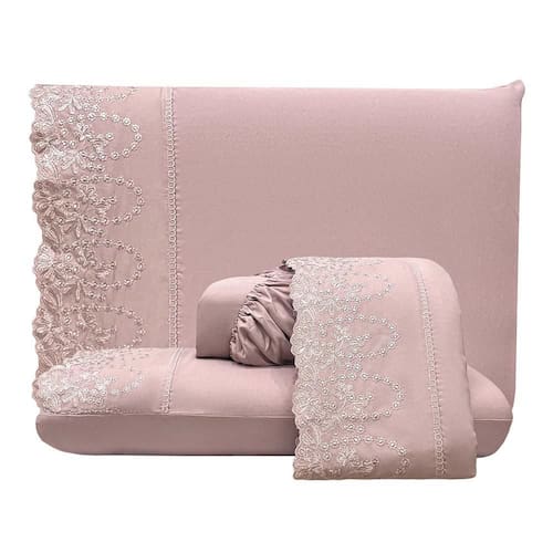 Jogo de Cama Lençol Casal Desirre 4 Peças - Rosê - 100% Poliéster