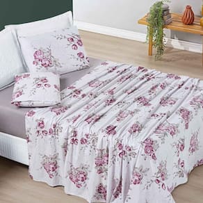 Esse jogo de cama é feito com tecido micropercal 200 fios, 100% poliéster, proporcionando conforto, maciez e respirabilidade. Além disso, as estampas florais são um diferencial, trazendo delicadeza ao produto. O lençol de baixo com elástico é prático e funcional, garantindo um ajuste perfeito ao colchão.