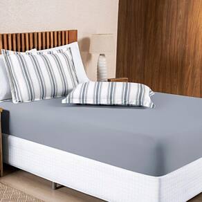 Jogo Cama Lençol Daily Casal Padrão Malha 100% Algodão Listrado 3 Peças - Cinza - Única
