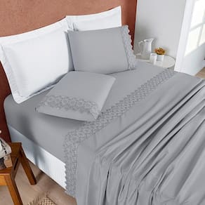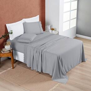 Jogo Cama Lençol Divino Lese Casal 4 Peças - Grafite