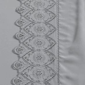 O bordado inglês meticulosamente trabalhado adiciona um toque artesanal, elevando a estética do conjunto e conferindo-lhe um charme atemporal. Cada detalhe é uma expressão de excelência, desde o padrão do bordado até a escolha cuidadosa dos materiais.