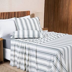 Jogo Cama Lençol Estilo Queen 100% Algodão 4 Peças - Cinza