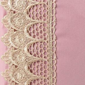 Jogo Cama Lençol Haia Queen Percal 200 Fios 100% Algodão Guipir Bordado Inglês 4 Peças - Rosê - Única