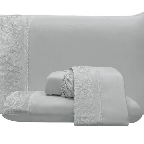 Jogo de Cama Lençol King Top Line 4 Peças - Cinza - 100% Poliéster