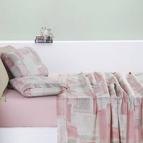 Jogo Cama Lençol Maris Casal Percalle 200 Fios Quadri Rosê
