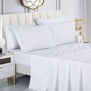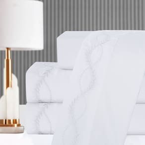 Experimente o conforto incomparável do Jogo de Lençol Merit, confeccionado em Percal de Poliéster 300 fios com toque de algodão, oferecendo uma maciez envolvente e duradoura. Esse conjunto é ideal para quem busca um acabamento sofisticado, destacando-se com um bordado exclusivo de coroa de louros, símbolo de vitória e distinção, que confere elegância ao seu ambiente.