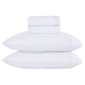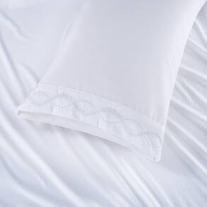 Jogo Cama Lençol Merit Queen Bordado Coroa de Louros Percal 300 Fios 4 Peças - Branco - Única