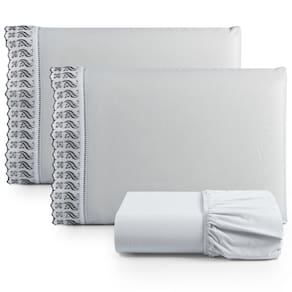Jogo Cama Lençol Paris Queen Percal 180 Fios 100% Algodão Lese Bordada 3 Peças - Cinza - Única