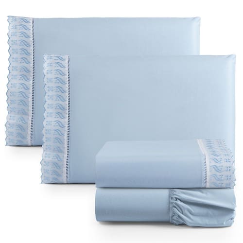 Jogo Cama Lençol Paris Queen Percal 180 Fios 100% Algodão Lese Bordada 4 Peças - Azul Claro - Única