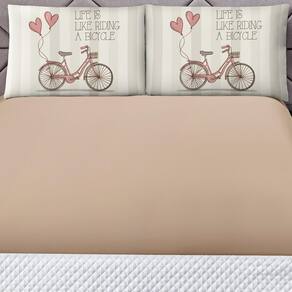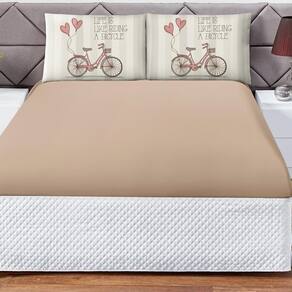 Jogo Cama Lençol Shine Queen Microfibra 180 Fios 3 Peças - Vintage Bike Bege