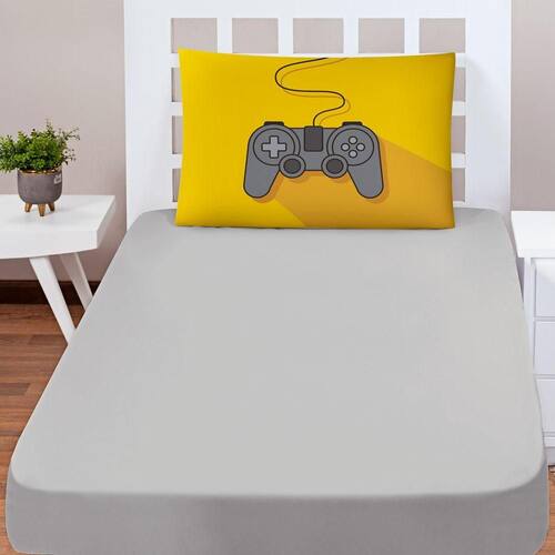Jogo Cama Lençol Shine Solteiro Microfibra 180 Fios 2 Peças - Controle Game Cinza