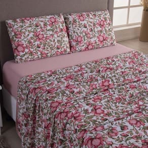 Jogo Cama Lençol Sonnet Queen Malha Estampada 100% Algodão 4 Peças - Flores - Rosê - Única