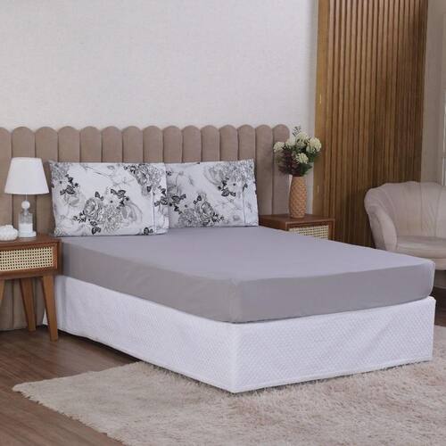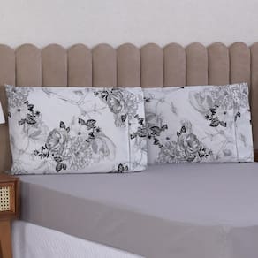Jogo de Cama Queen 3p Lençol + Fronha Esmeralda Percal 100% Algodão Cor: Floral cinza Mais beleza para o seu dia a dia e conforto para as suas noites de sono.