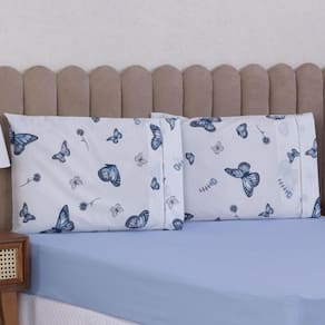 Jogo de Cama Queen 3p Lençol + Fronha Esmeralda Percal 100% Algodão Cor: Borboleta azul Mais beleza para o seu dia a dia e conforto para as suas noites de sono.