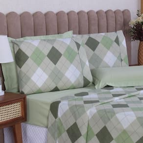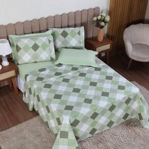 Jogo de Cama Queen 4p Lençol + Fronha Esmeralda Percal 100% Algodão Cor: Xadrez verde Mais beleza para o seu dia a dia e conforto para as suas noites de sono.