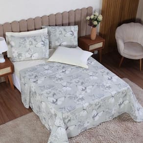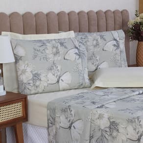 Jogo de Cama Queen 6p Lençol + Fronha Esmeralda Percal 100% Algodão Cor: Borboleta palha Mais beleza para o seu dia a dia e conforto para as suas noites de sono.