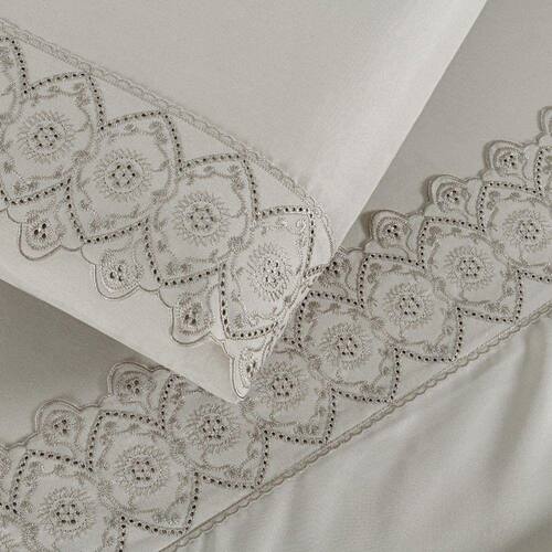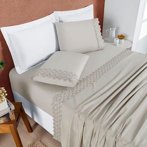 O Jogo de lençol para cama Queen com 04 peças confeccionado em tecido Micropercal 200 fios, detalhes em bordado inglês na fronha e no lençol de cima. Possui alto padrão de qualidade, proporciona conforto e sofisticação.