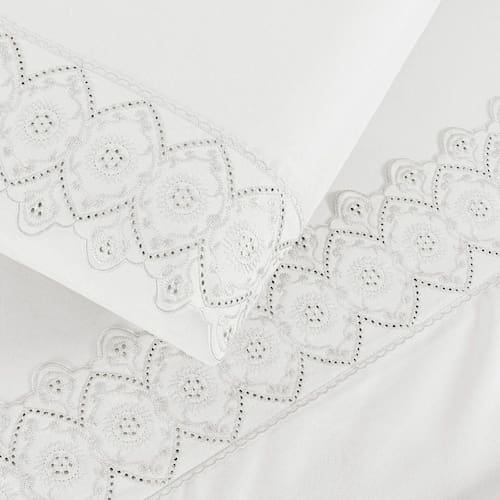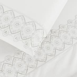 O Jogo de lençol para cama Queen com 04 peças confeccionado em tecido Micropercal 200 fios, detalhes em bordado inglês na fronha e no lençol de cima. Possui alto padrão de qualidade, proporciona conforto e sofisticação.