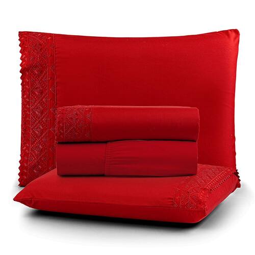 O Jogo de lençol para cama Queen com 04 peças confeccionado em tecido Micropercal 200 fios, detalhes em bordado inglês na fronha e no lençol de cima. Possui alto padrão de qualidade, proporciona conforto e sofisticação.